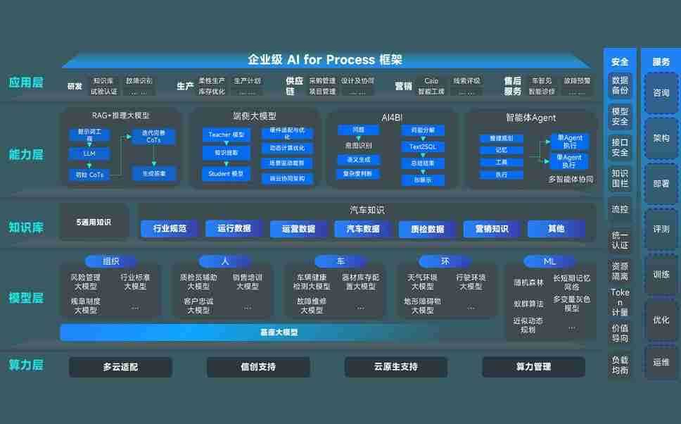 端到端的一站式AI工作空间深度融合了从企业战略规划到日常经营的全流程业务板块,,,,定向解决车企内部领域多、、、、部门多、、、、链条长、、、场景碎片化等难题,,,,支持车企快速构建以AI为核心的生产力写作体系,,,,实现任务执行与AI能力的无缝集成与交互