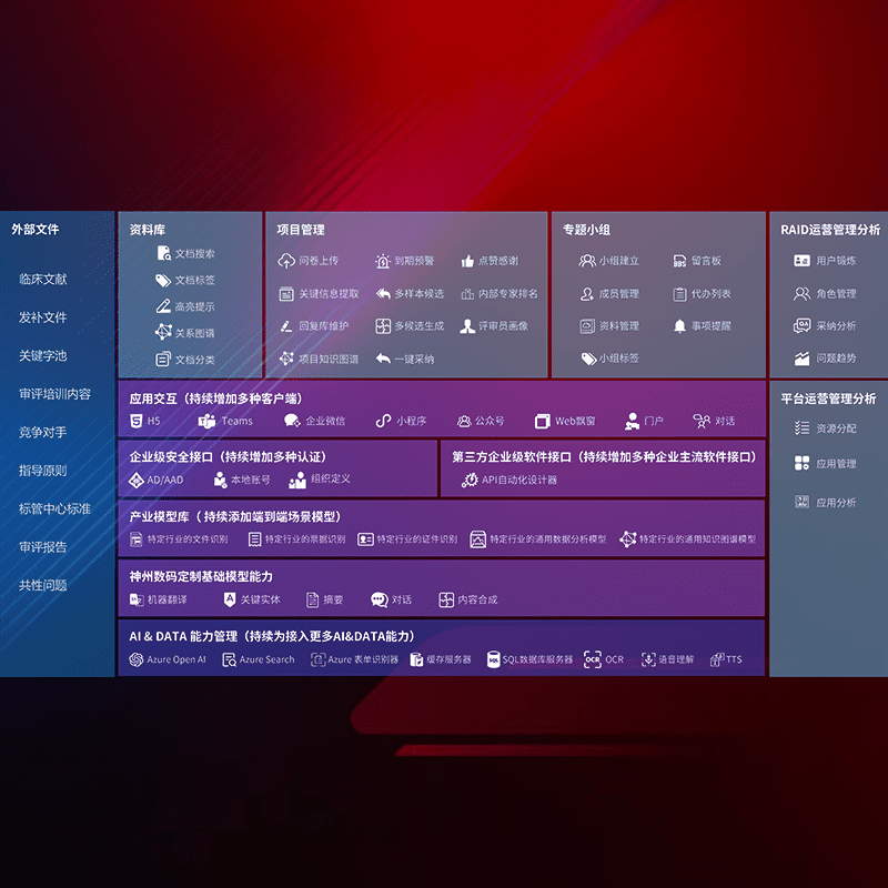 医疗器械产品上市前,,,,要熟悉严格与繁复评审标准,,整理分析监管机构指导文件中的海量信息。。。。企业急需一个智能化解决方案,,提升知识管理效率,,,,提高评审通过率,,,,以提升其市场竞争力。。