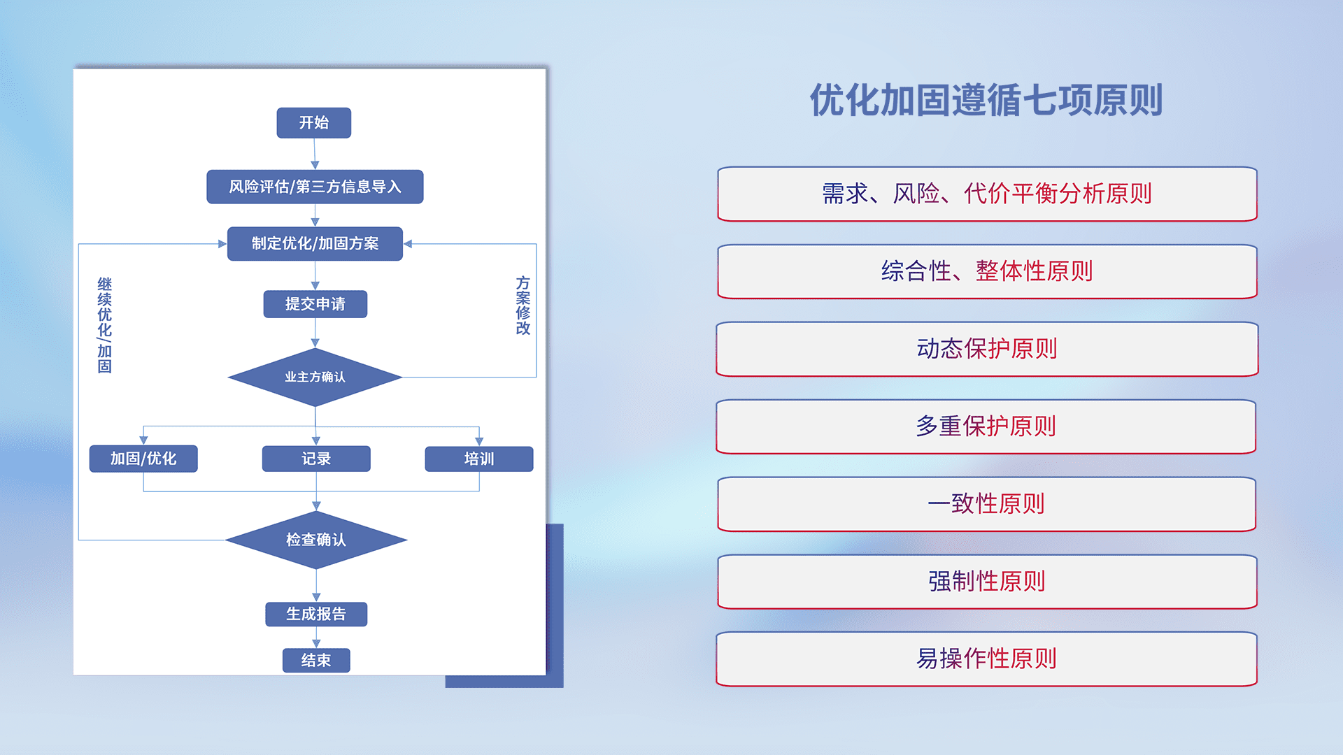 最大程度利用现有资产,,,对评估发现的问题进行封堵与整改,,,,防止漏洞被利用,,提升整体网络安全性,,,,为客户带来高标准的优化加固服务。。。。
