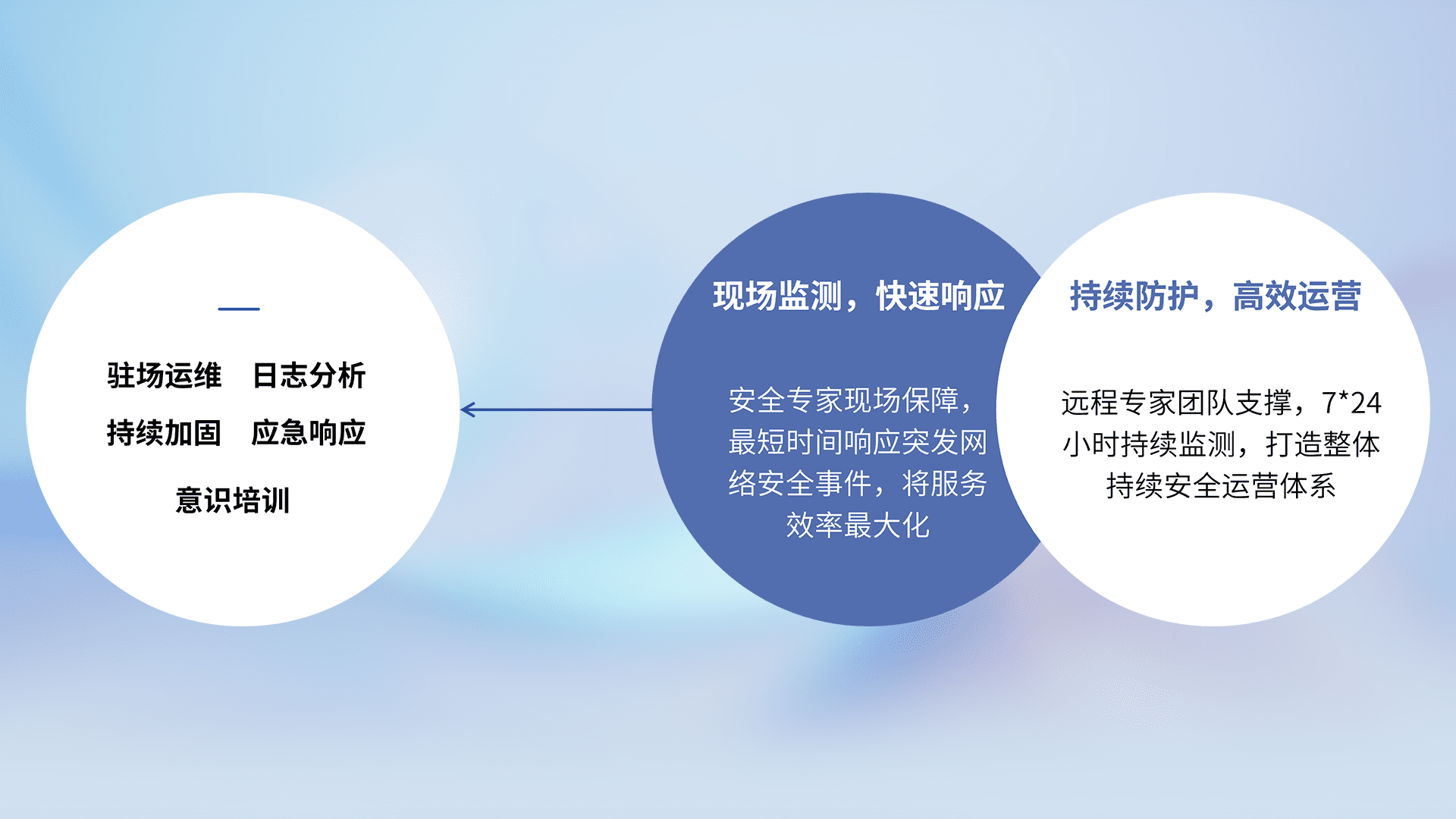 7X24小时持续监测安全事件,保持安全策略有效性,降低资产脆弱性风险,,,,精准拦截黑客攻击,,减少被黑客利用的机会,,,,第一时间遏制,,降低损失。。。